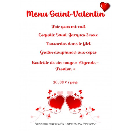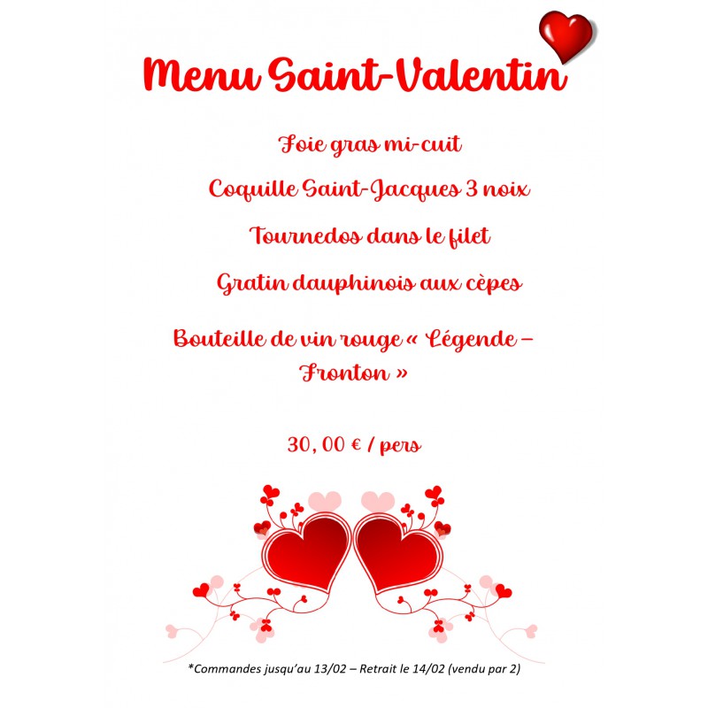 Menu Saint Valentin pour 2